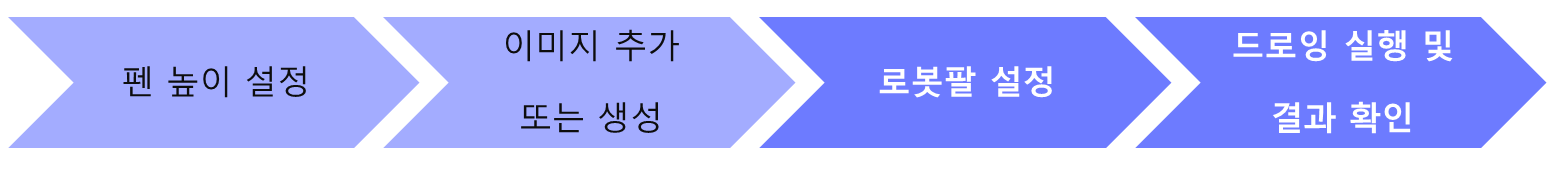 **\[드로잉] 탭**은 HUENIT 로봇팔을 활용하여 다양한 그림을 그리고 창의적인 드로잉 작업을 수행할 수 있는 기능입니다. 사용자는 펜 홀더 모듈을 이용해 정밀한 선과 도형을 표현하거나, 원하는 이미지를 로봇팔이 따라 그리도록 설정할 수 있습니다.