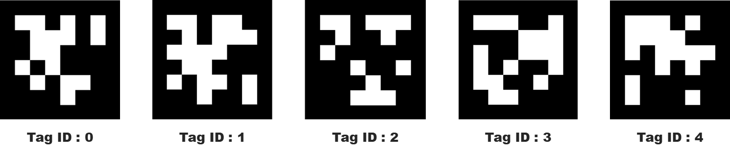 <figure><img src="https://3075547475-files.gitbook.io/~/files/v0/b/gitbook-x-prod.appspot.com/o/spaces%2FmpoZH5TMk0ougpcCYECz%2Fuploads%2FCQa7nfQdwbT2gmLoedSS%2Fimage.png?alt=media&#x26;token=61a0bc4f-a5f2-4779-8c77-6d29f5ad98a2" alt=""><figcaption><p>Tag36h11 일부 (고유 ID 0~4번)</p></figcaption></figure>