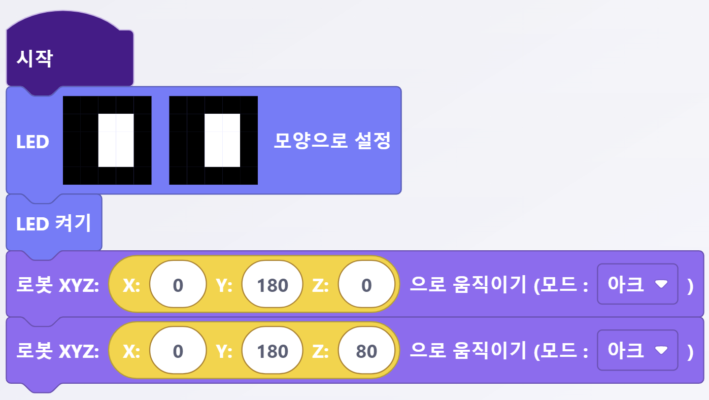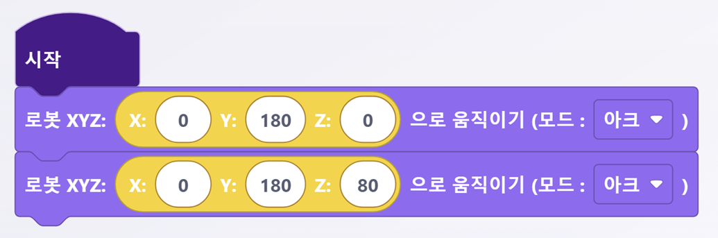 ### 로봇팔 \[라이브] 모드 사용 시 주의사항