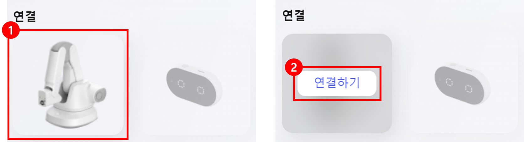 2. 아이콘에 마우스를 올려 **\[연결하기]** 버튼을 클릭하여 로봇팔과 연결합니다.