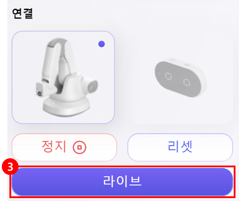 로봇팔을 **\[라이브] 모드**로 실행할 경우,\