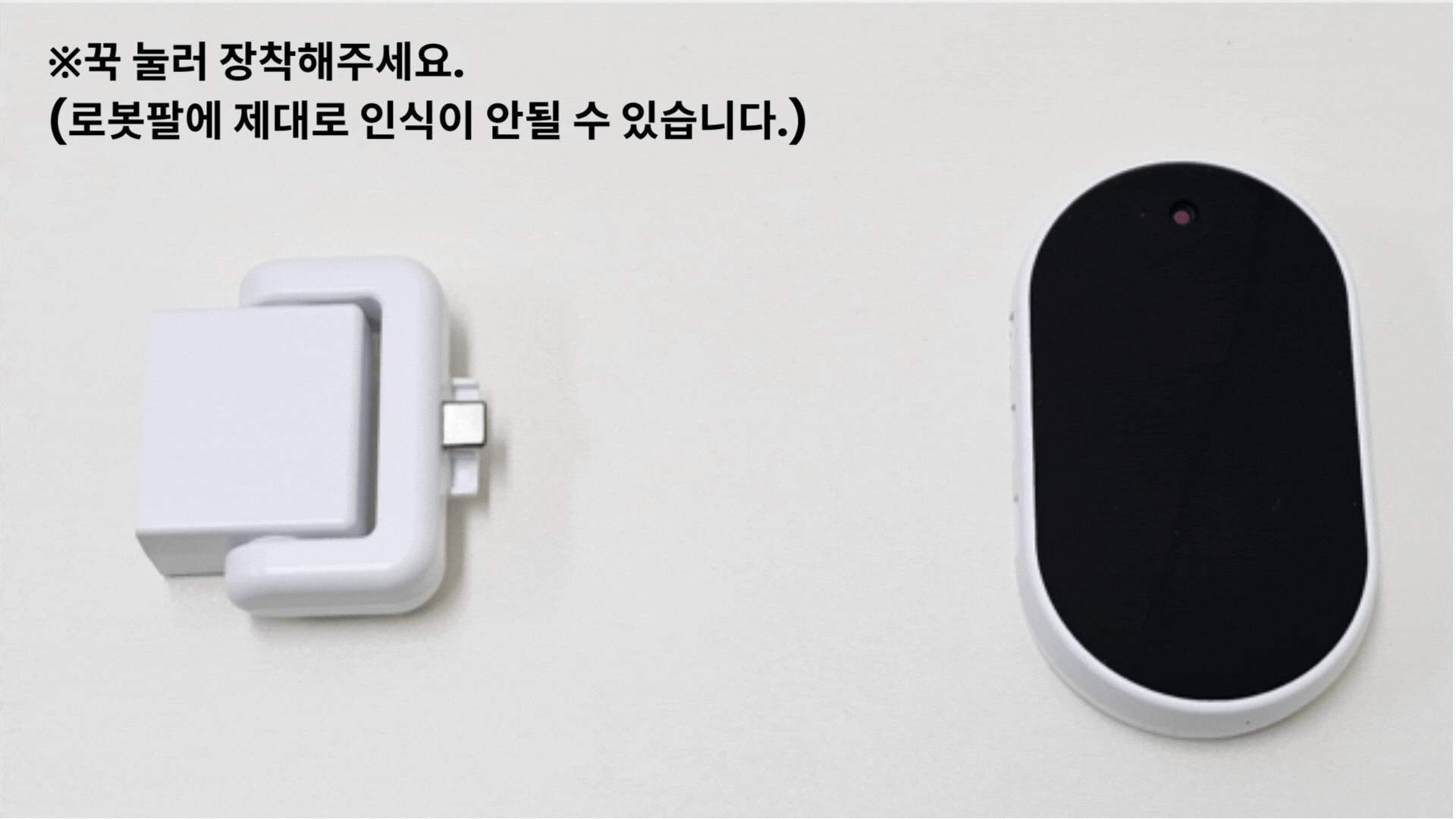 * <mark style="color:purple;">AI 카메라 거치대</mark>와 <mark style="color:purple;">HUENIT 로봇팔</mark>을 홈에 맞춰 자석으로 연결합니다. (주의사항 : 자석으로 연결할 때 손이 끼지 않도록 주의합니다.)