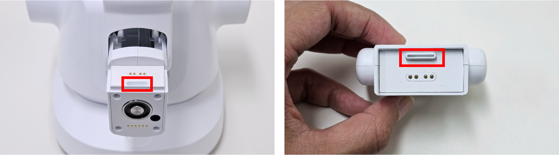 AI 카메라에 불이 들어오지 않을 경우, AI 카메라 거치대의 금속핀과 로봇팔의 금속핀이 제대로 연결되지 않은 것입니다.