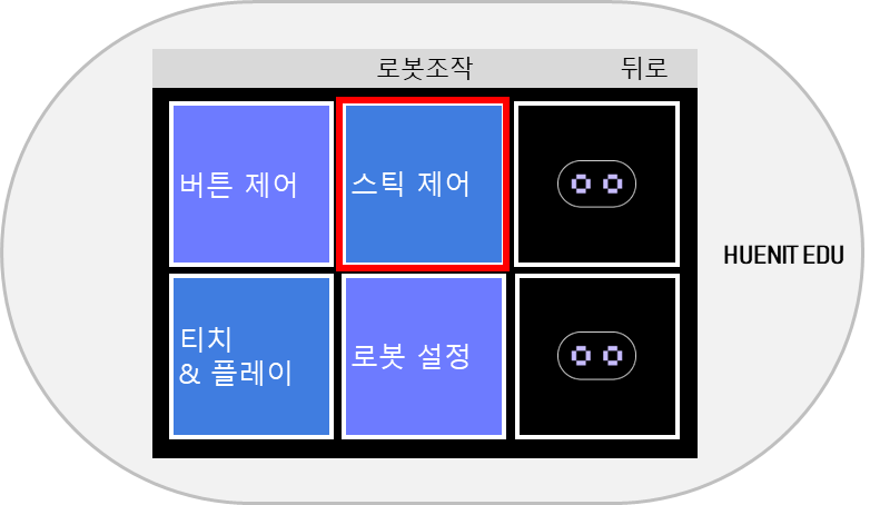 <figure><img src="https://3075547475-files.gitbook.io/~/files/v0/b/gitbook-x-prod.appspot.com/o/spaces%2FmpoZH5TMk0ougpcCYECz%2Fuploads%2FJgZxHZxDnRy1Imx2iogR%2Fimage.png?alt=media&#x26;token=32bc6ed9-fc9e-42c8-b457-e8b72d6642ba" alt="" width="563"><figcaption><p>HUENIT OS - [로봇 조작] > 스틱 제어</p></figcaption></figure>
