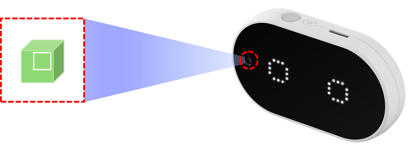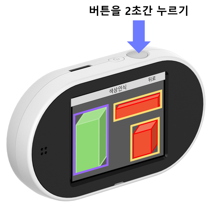 * 원하는 \[색상 인식] 모델의 학습을 완료하려면, AI 카메라의 버튼을 2초 동안 길게 눌러줍니다.