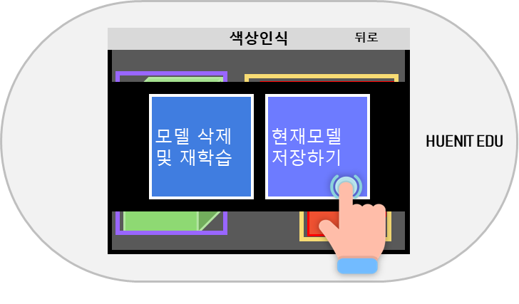 * 터치 디스플레이를 클릭하여 학습을 시작하며, 해당 색상의 학습이 100% 완료될 때까지 색상이 영역을 벗어나지 않도록 주의합니다.