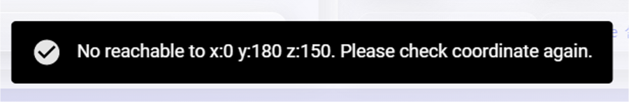 If you encounter a "No Reachable" error when clicking the [Play] button in [Teach & Play], it means that the robotic arm cannot reach one of the coordinates. The two common situations that cause this error are: