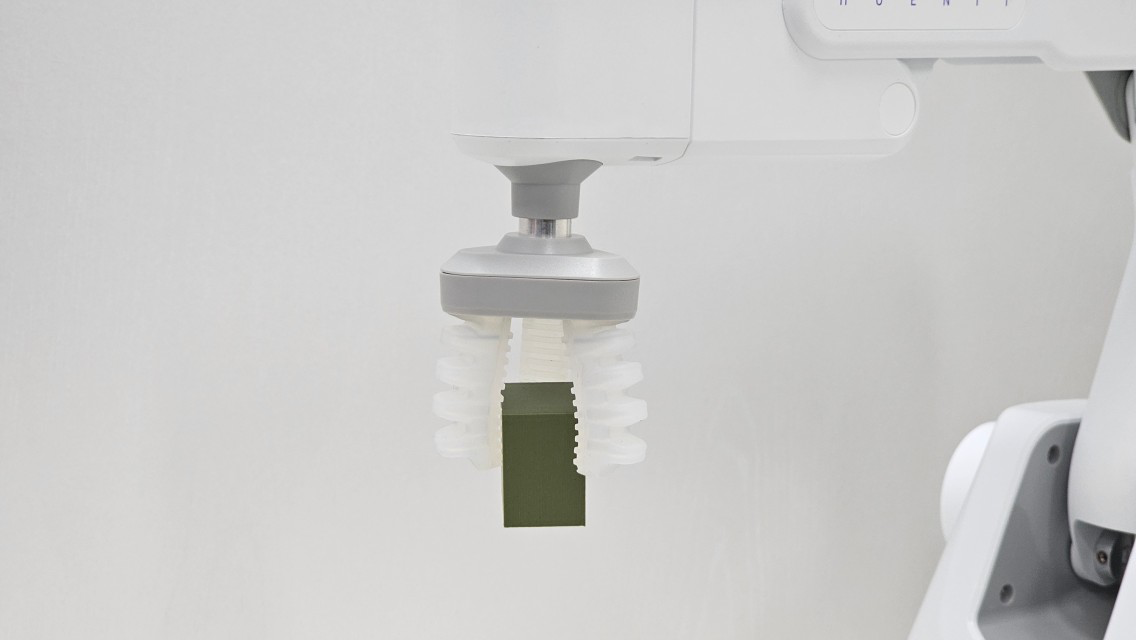 The Soft Gripper can be controlled in three states: Idle, Grip, and Open. The Soft Gripper is used for picking up irregularly shaped objects and is more suitable for lighter objects compared to the Suction module.