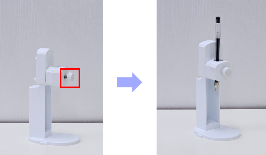 Insert the pen into the pen holder module and secure it tightly with the provided screws.
